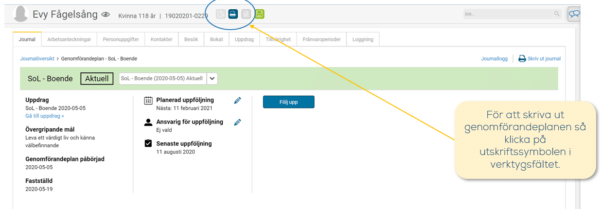 Skriva ut genomförandeplan