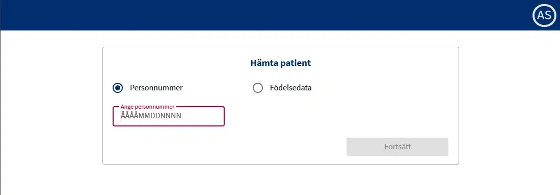 Obs! Om en patienten saknar svenskt personnummer anges istället födelsedata för patienten. Läkemedelslista kan inte hämtas för patient som saknar svenskt personnummer. (Därav är det heller inte aktuellt att ange samtycke) Specifikt apotek kommer efterfrågas när receptet ska skickas.