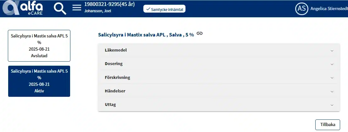 För att se din patients förskrivningar och uttag behöver du ange patientens personnummer och ange ett samtycke. Vilken information du får se styrs av patientens situation och samtycke.
