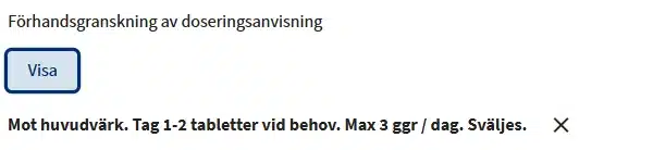 Doseringsanvisning visas direkt under knappen: